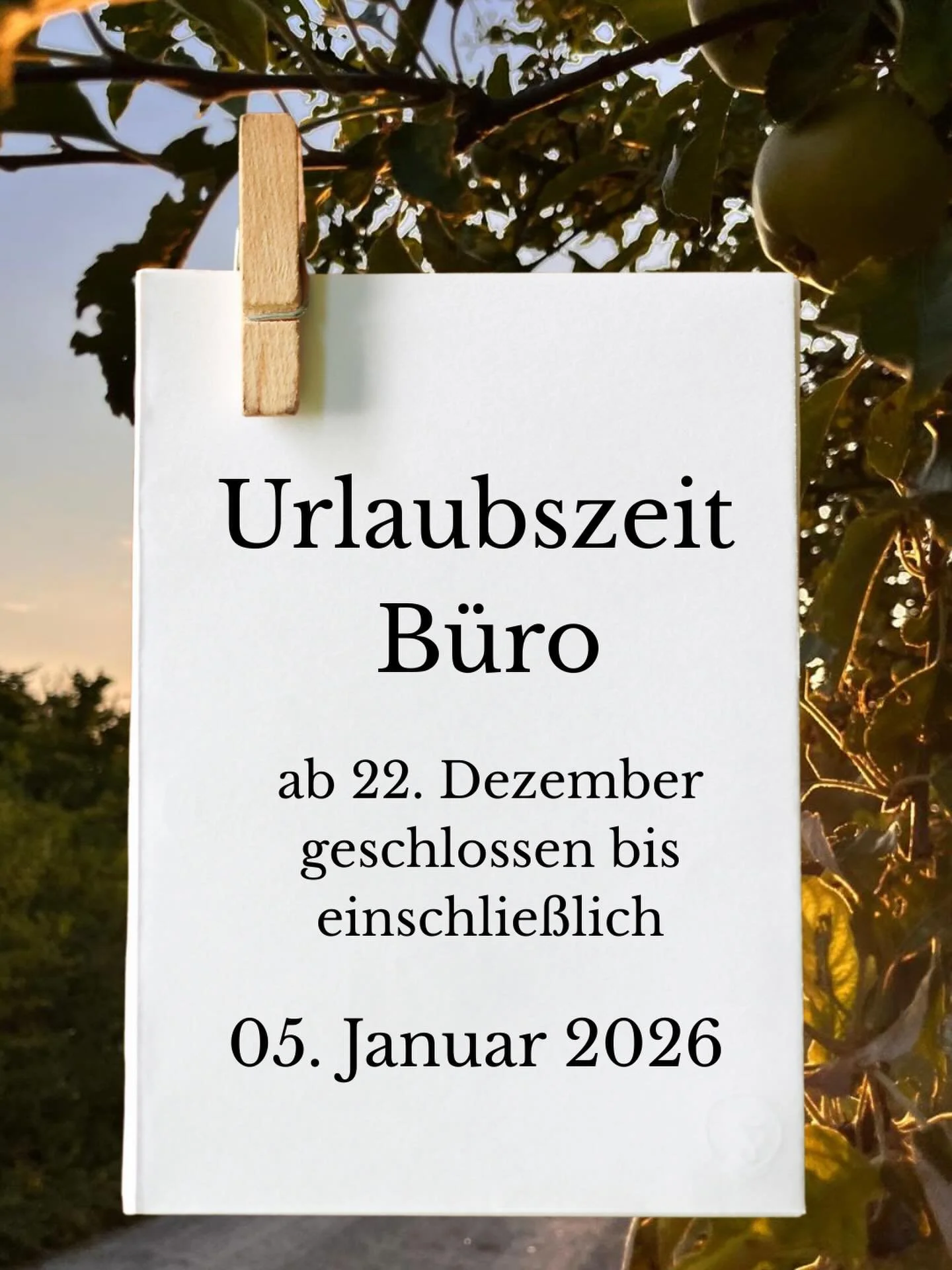 Unser Büro ist urlaubsbedingt vom 23.12.2025 bis einschließlich 05.01.2026 geschlossen.