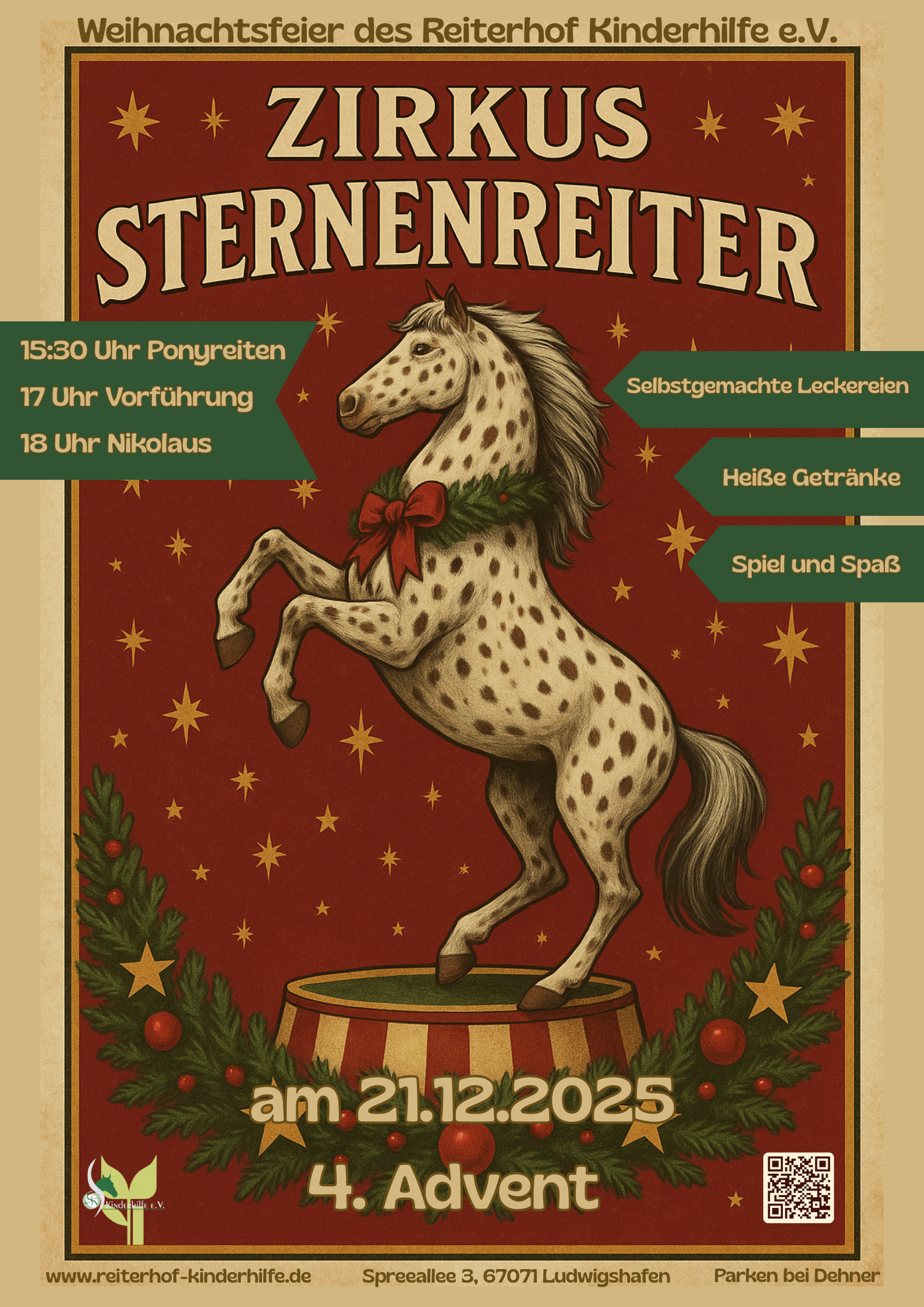 Weihnachtsfeier am SO 21. DEZ ab 15.30 Uhr mit Ponyreiten.